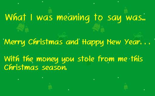 with the money you stole from me this Christmas season.